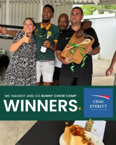 Winners of the best Bunny Chow event this year were Chas Everitt Bluff - congrats guys on a seriously tasty Bunny Chow! They were followed by Re/Max, Century 21 and Acutts Bluff - all teams having drawn a mystery box of ingredients to put together a dish to wow the judges. Some serious cooking took place and it was a close call to decide the winners. Well done teams!