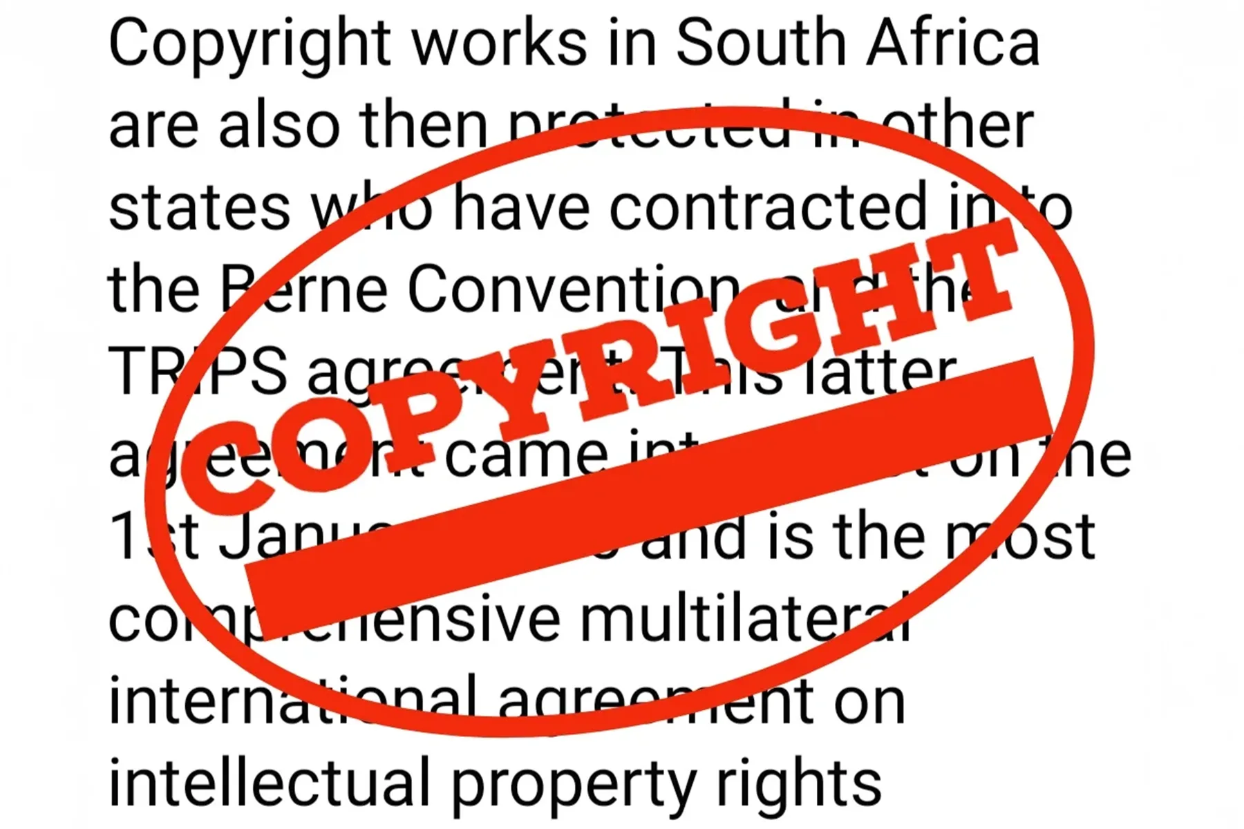 Copyright works in South Africa are also then protected in other states who have contracted in to the Berne Convention, and the TRIPS agreement. This latter agreement came into effect on the 1st January 1995 and is the most comprehensive multilateral international agreement on intellectual property rights covering copyright, trademarks, origin claims, industrial design, patents, layout designs of integrated circuits and trade secrets amongst others.