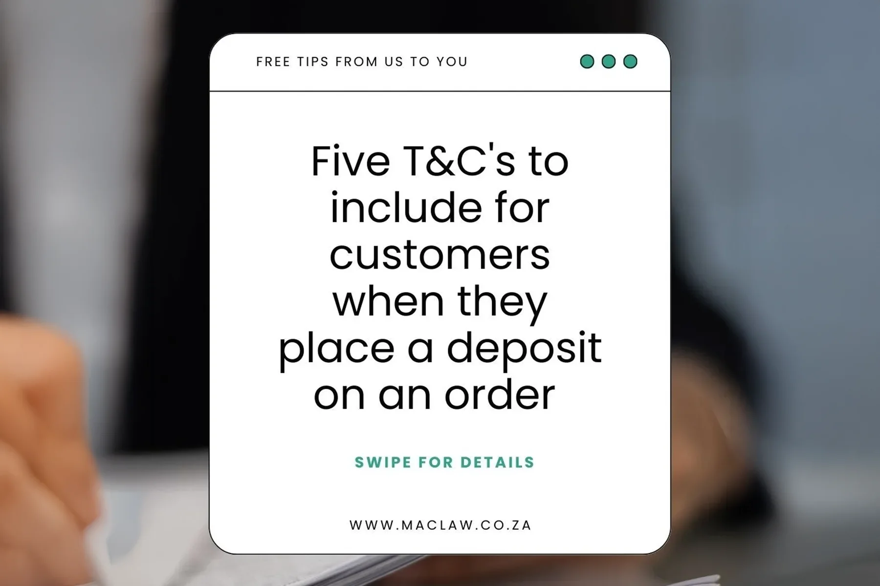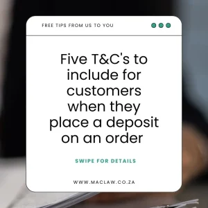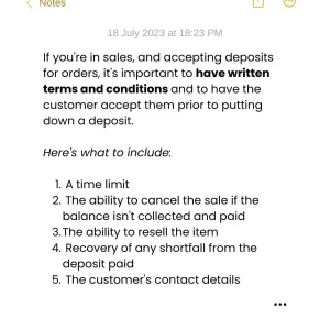 When accepting deposits for Orders, make sure the customer accepts written Terms and Conditions dealing with the situation where :