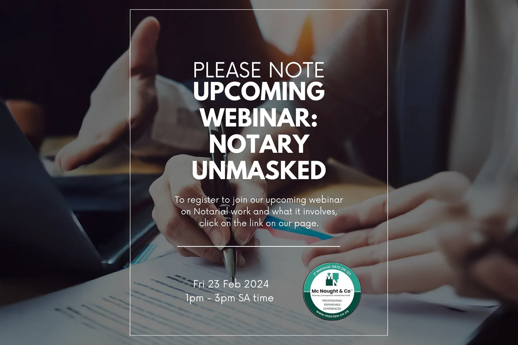 The Webinar, Notary unmasked, aims to explain what a Notary Public does and what documents a Notary executes and what scope of work is involved.